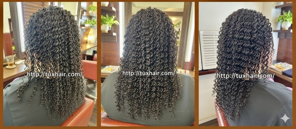 強めのねじりとカールを組み合わせたツイストスパイラルパーマ。