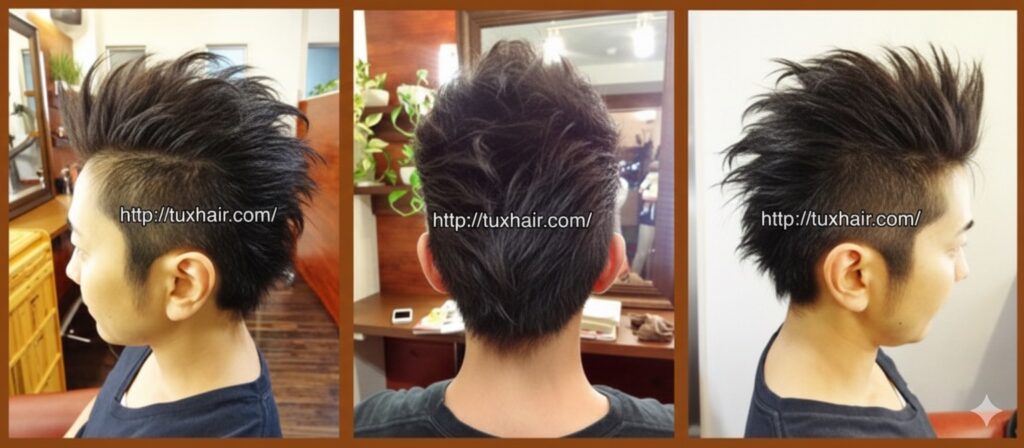 モヒカンリーゼント仕上げ。フロント、トップを立ち上げる。