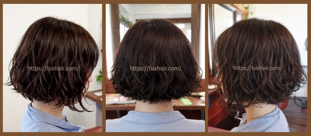 柔らかい動きと丸みを出したショートパーマ。