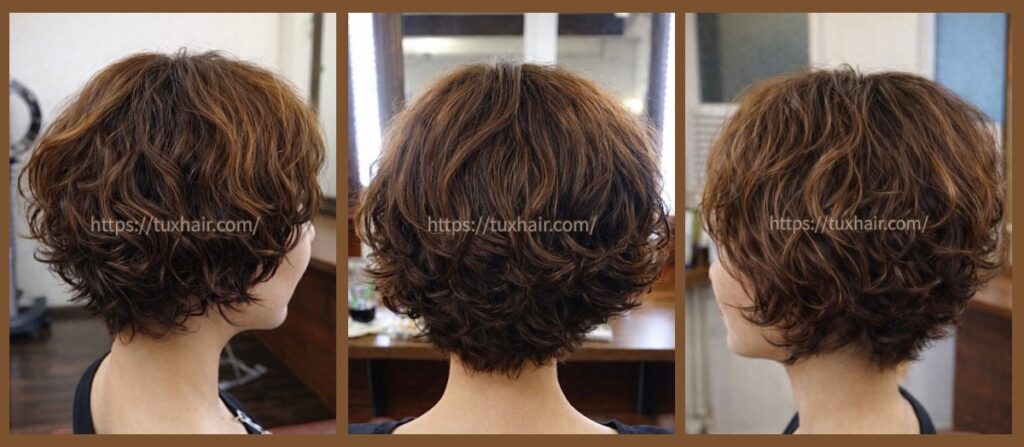 柔らかい動きと丸みを出したショートパーマ。