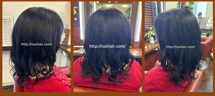 毛先にやわらかな動きを出した、ミディアム向けのパーマスタイル。